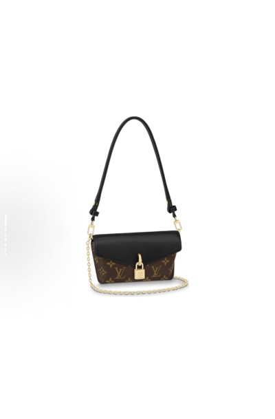 Black & Brown Contrast Monogram Lock Bag - Chain-Strap Envelope Shoulder & Crossbody Bag