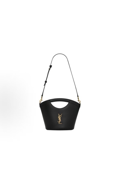 Black Bucket Bag with Cutout Handle & Metal Accent, Shoulder & Crossbody Style