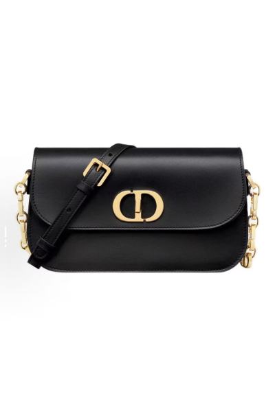 Black Leather Flap Crossbody Bag Gold Buckle Chain-Strap Shoulder Bag