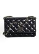 Black Patent Leather Quilted Crossbody Bag with Rhinestone Embellishments & Chain Strap