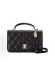Black Quilted Diamond-Pattern Leather Bag with Metal Tag (Tote & Crossbody)