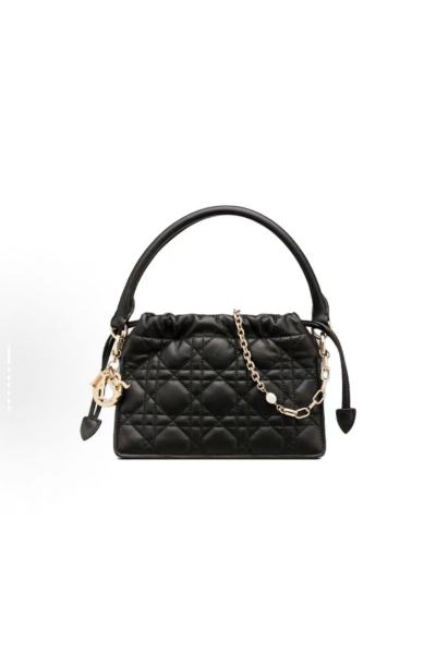 Black Quilted Drawstring Handbag Metal Chain-Strap Crossbody Bag