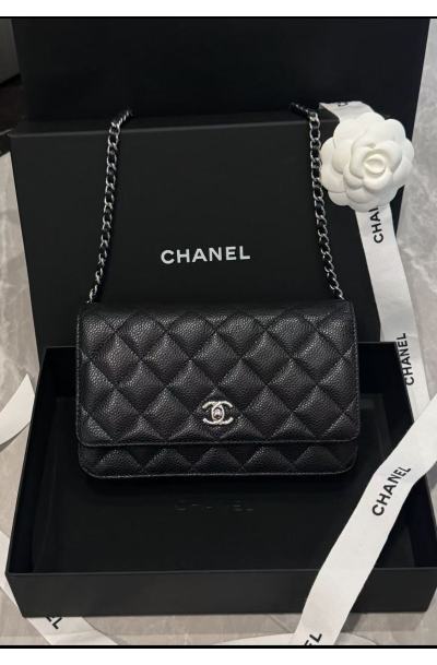 Black Quilted Leather Chain Crossbody Bag (Metallic Buckle Accent + Flap Design)