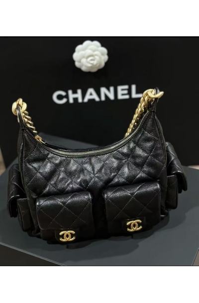 Black Quilted Leather Multi-Pocket Chain Bag (Braided Strap + Stylish Crossbody)