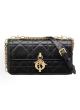 Black Quilted Metal Buckle Chain Bag - Textured Leather Shoulder Crossbody Bag