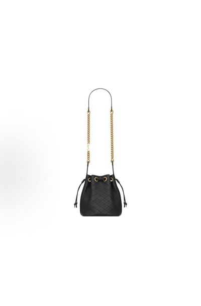 Black Quilted Metal Buckle Drawstring Chain Bucket Bag
