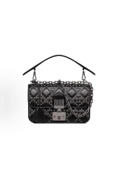 Black Quilted Star Studded Bag Metal Lock Chain-Strap Crossbody Bag