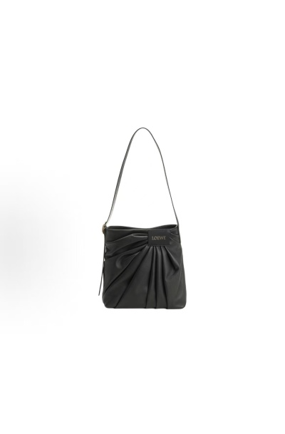 Black Ruched Leather Shoulder Bag - Minimalist Thin-Strap Underarm Bag with Stylish Drape for Daily Commute