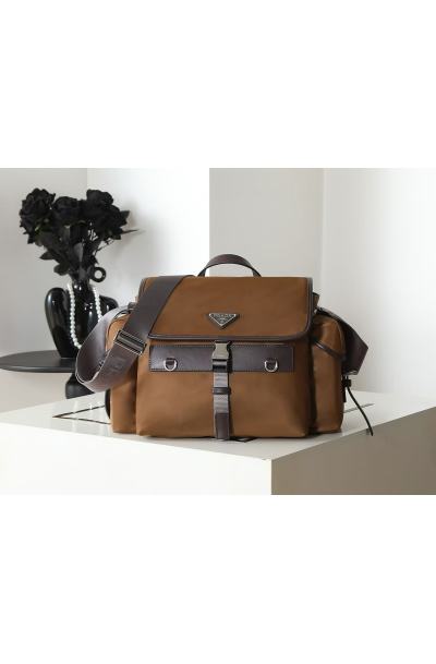 Caramel Brown Water-Resistant Nylon & Leather Paneled Flap Messenger Bag (Multi-Compartment Commuter Shoulder & Handbag)