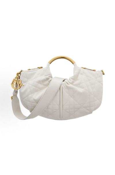 Cream Quilted Ruched Handbag - Metal Hoop Handle Charm Convertible Cloud Bag