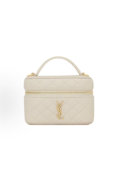 Light Beige Quilted Square Box Bag with Metal Accent, Handheld Mini Bag