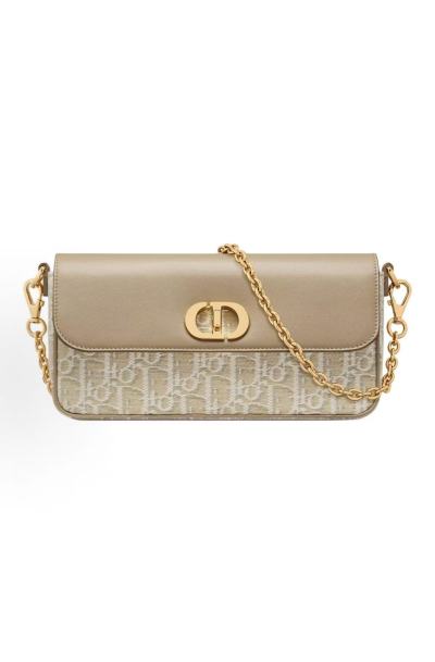 Light Gold Contrast Jacquard Flap Bag Metal Buckle Chain-Strap Crossbody Bag