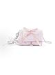 Pastel Pink Ruffled Bow Mini Crossbody Bag with Lace Detail & Pearl Chain - Unique Small Shoulder Bag