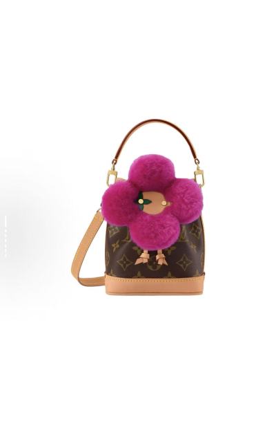 Plush Flower Decor Vintage Printed Bucket Bag - Top-Handle Crossbody Sweet & Edgy Personalized Small Bag