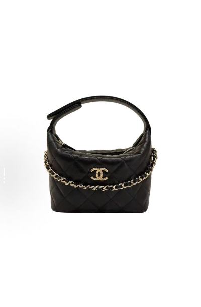 Quilted Soft Leather Top-Handle Crossbody Bag (Short Strap + Metal Chain Shoulder Strap